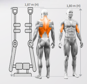 Low row nudi aktivacione programe za više mišićnih grupa, uključujući leđa, bicepse, stražnje deltoide i trapezaste mišiće. Drške u dvostrukom položaju omogućavaju treniranje različitih mišića. Nezavisno pokretne ruke osiguravaju ravnotežu tokom treninga i podržavaju korisnika u izvođenju odvojenog treniranja.