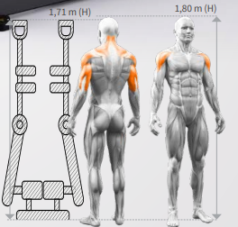 Shoulder press pruža osećaj treninga sa slobodnim težinama, sa izvrsnim biomehaničkim dizajnom idealnim za jačanje deltoida, tricepsa i gornjih trapezastih mišića, replicirajući overhead press. Nezavisno pokretne ruke garantuju uravnoteženo povećanje snage i omogućavaju korisniku da trenira samostalno.